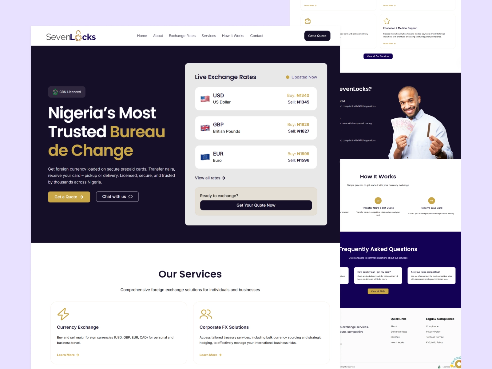 Seven Locks BDC, a forward-thinking Bureau De Change, required a robust digital presence that could handle the fast-paced nature of currency exchange while maintaining high levels of user trust. The goal was to transition their traditional operations into a streamlined digital experience that offers real-time value to their clients.